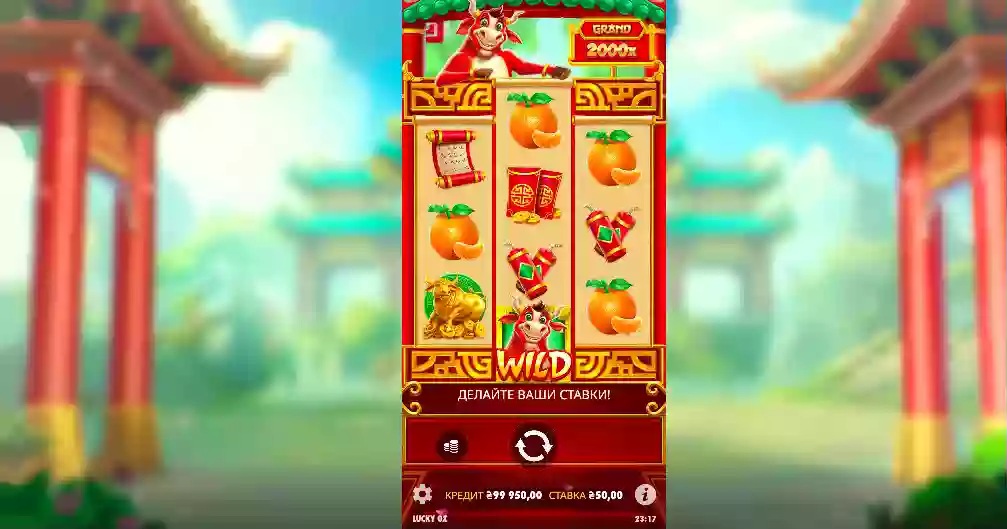 Lucky Ox натхненний китайською культурою: червоні ліхтарі, золоті монети, віяла, дракони — кожен елемент оформлення символізує добробут, удачу та силу. Головний герой гри — золотий бик, тварина, яка в китайському календарі асоціюється з багатством і стабільністю.